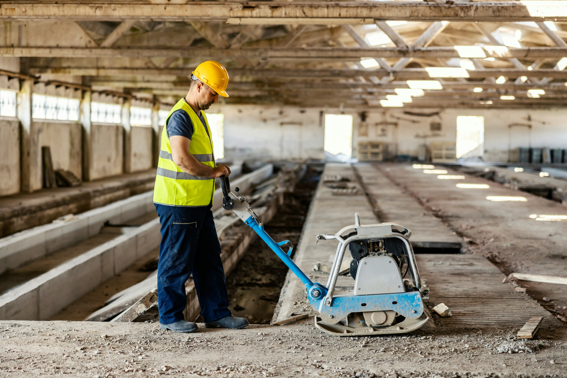 Komprimeringsmaskiner udsætter både operatør og omgivelser for kraftige vibrationer. Derfor er det vigtigt at bruge korrekt beskyttelsesudstyr – især handsker og høreværn – og at holde pauser for at undgå vibrationsskader.